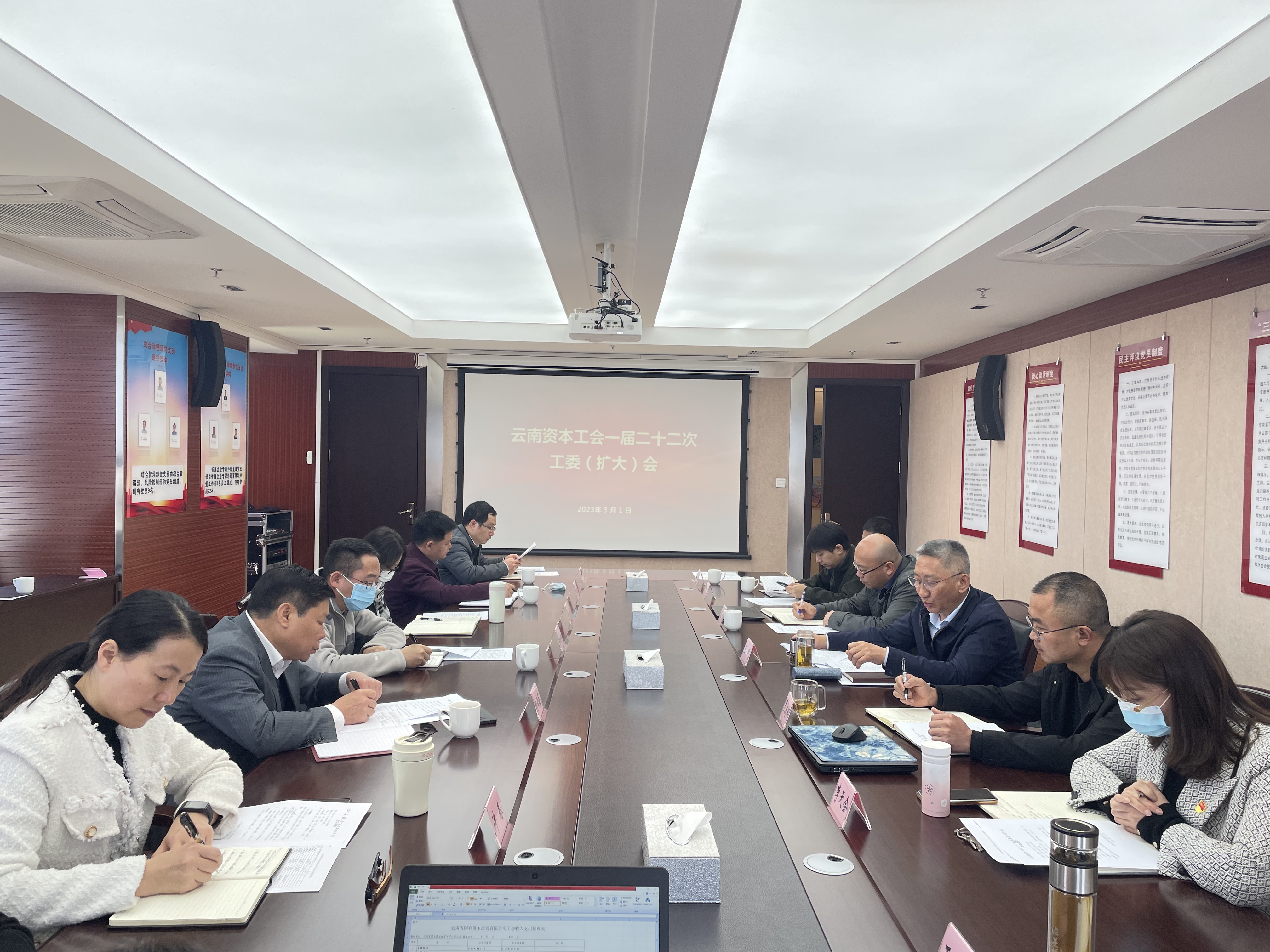 3月1日,云南资本召开工会一届二十二次工委(扩大)会,传达学习云南省总工会第十二届委员会第十二次全体会议及2023年全省工会维护劳动领域政治安全工作座谈会精神,安排部署2023年度重点工作。会议由公司党委副书记、工会主席王刚主持。会议明确了2023年10项工会重点工作:一是持续深入贯彻落实好党的二十大精神,在新时代新征程上不断开创党的工运事业和工会工作新局面;二是深入学习宣贯《云南省实施〈中华人民...