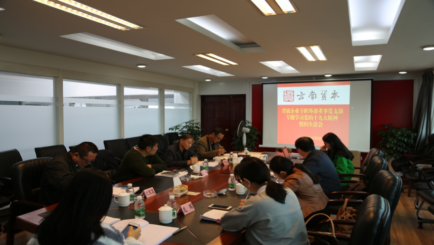2017年11月22日下午,省属国有企业专职外部董事党支部在云南国有资本运营公司召开学习党的十九大精神专题组织生活会,会议由党支部书记王冲同志主持,全体支部党员参加了会议。会上,大家紧扣学习党的十九大主题,结合自身实际分别交流了学习感悟与体会,开展了讨论活动。 王冲同志发言表示,党的十九大举世瞩目、继往开来,特别是习近平总书记所作的十九大报告,总结了过去五年辉煌成就和宝贵经...