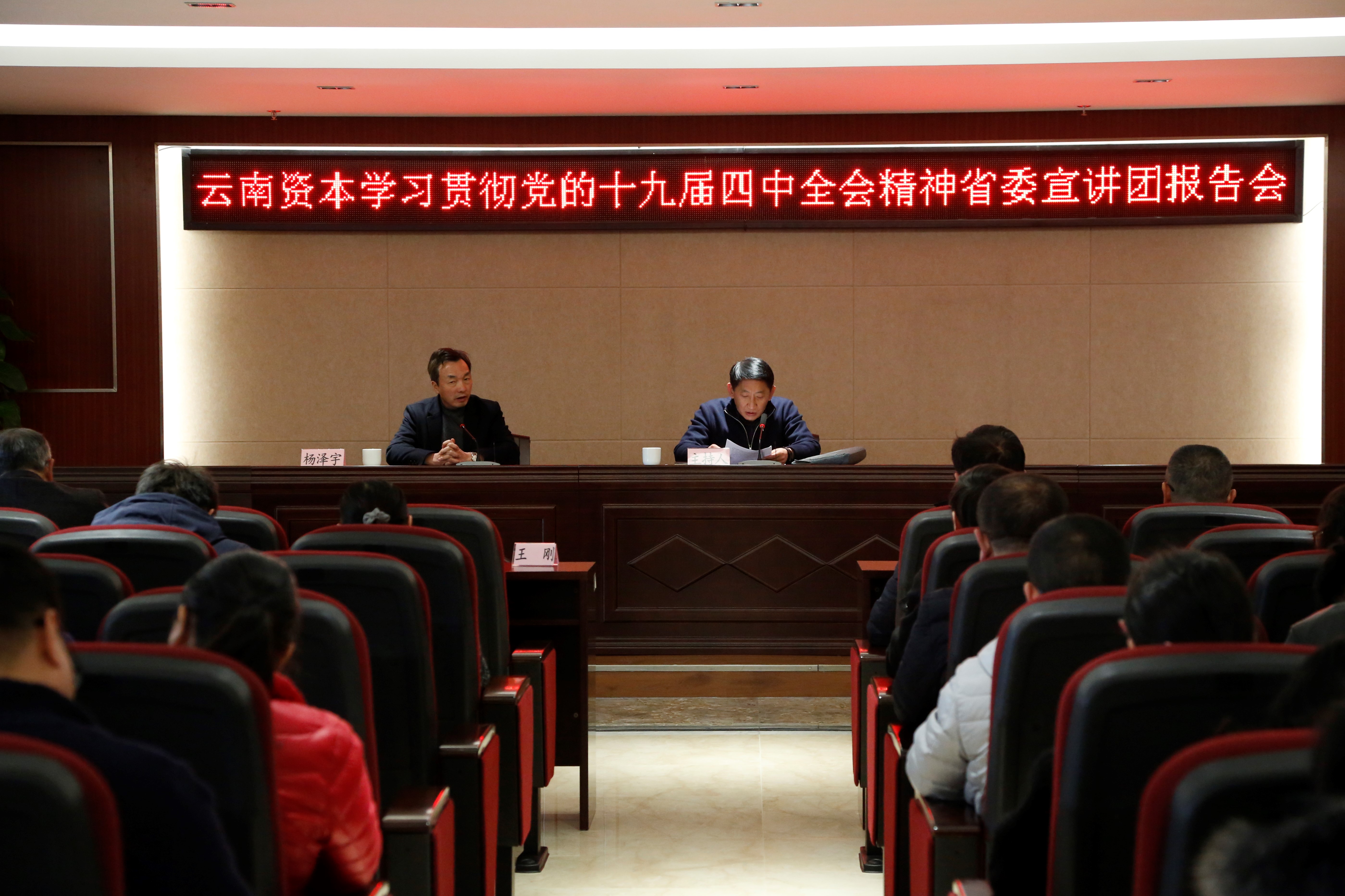 为深入学习宣传贯彻党的十九届四中全会精神,12月12日下午,公司党委邀请省委宣讲团成员、云南大学副校长、教授杨泽宇到公司开展党的十九届四中全会精神宣讲。公司党委副书记、工会主席王刚主持宣讲会,公司领导班子、省属企业专职外部董事、党员干部、总部全体干部职工、所属企业团员青年代表共计167人参加。 杨泽宇教授指出,十九届四中全会是在“两个一百年”...