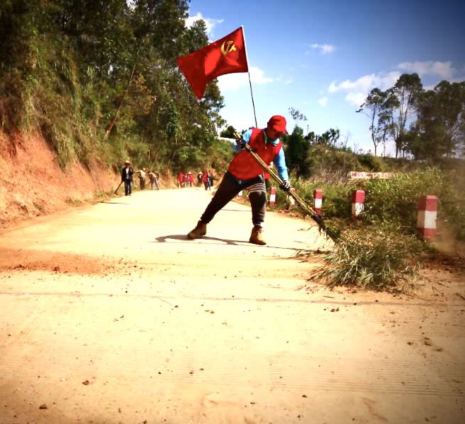 许飚在清扫村内主干道